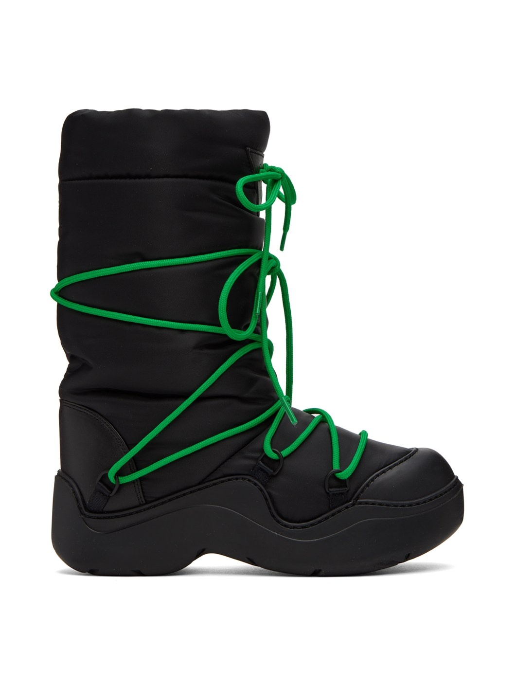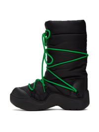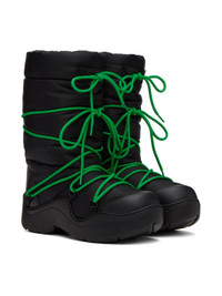 Mid-calf insulated nylon taffeta boots in black. · Round rubber cap toe · Modified lace-up closure · Self-tie drawstring at collar · Partial fleece lining · Structural rubber platform midsole · Treaded rubber outsole · Platform: H1.5 in · Heel: H1.25 in Supplier color: Black parakeet Upper: textile. Sole: rubber. Made in Italy 231798F114002