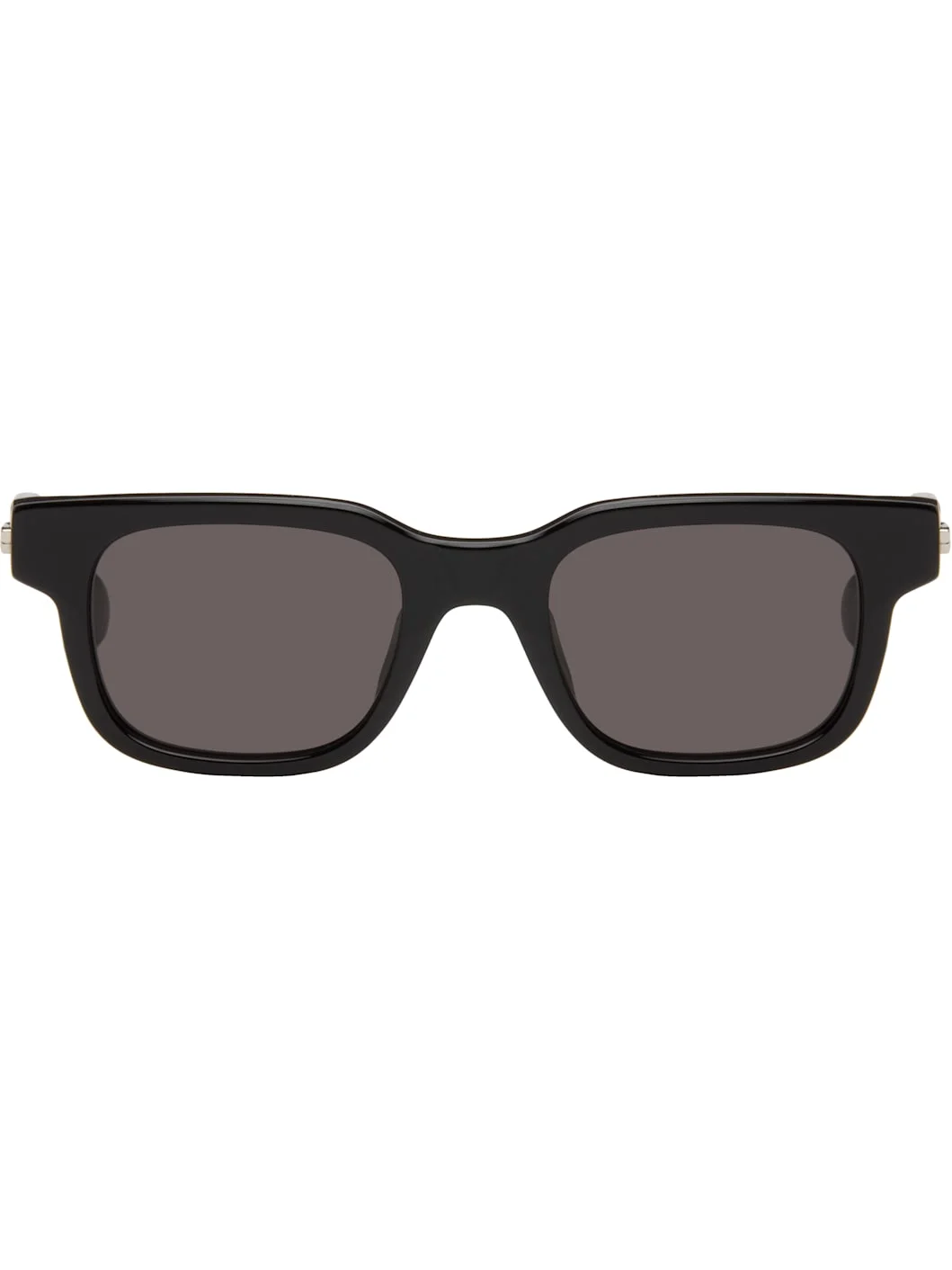 Square acetate-frame sunglasses. · Gray lenses · Integrated nose pads · Logo hardware at temples · Includes case · Size: 49.21 145 Supplier color: Black/Black/Grey Acetate. Made in Japan 261798M134015