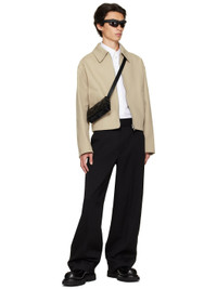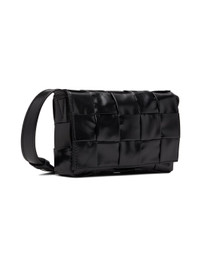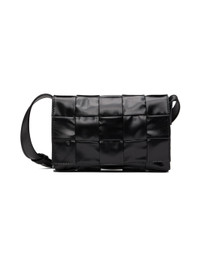 Intreccio-woven buffed calfskin messenger bag in black. · Adjustable shoulder strap · Foldover flap with magnetic closure · Zip pocket at interior · Unlined · H4.25 x W7 x D1.75 in Supplier color: Black/Silver Calfskin. Made in Italy 231798M170026