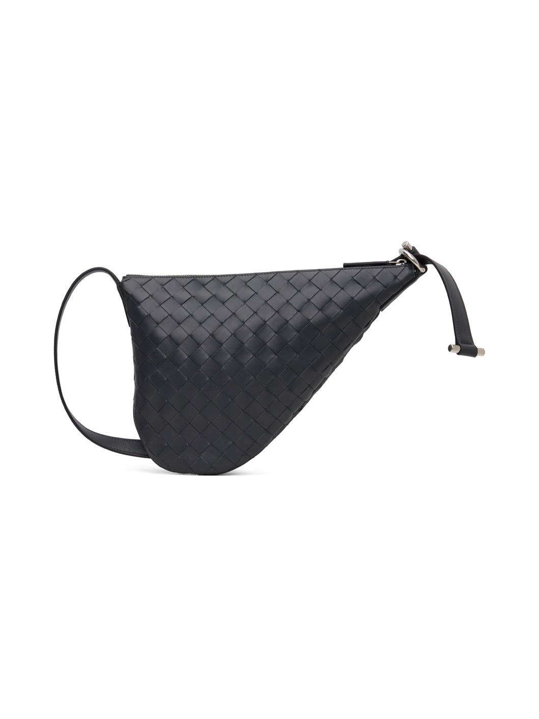 Intrecciato-woven grained calfskin messenger bag in black. · Adjustable crossbody strap · Zip closure · Patch pocket at suede interior · H8.5" x W12" x D0.75" Supplier color: Ardoise/Silver 100% calfskin. Made in Italy 241798M170023