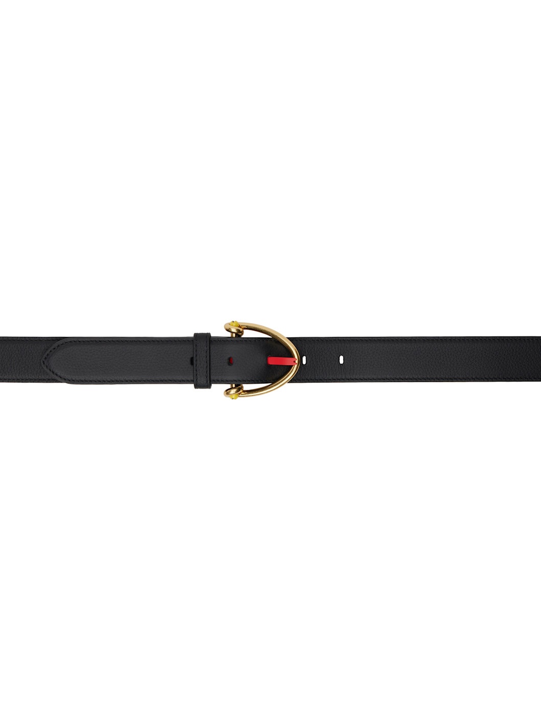 Grained calfskin belt in black. · Pin-buckle fastening · Gold-tone hardware · W1.25" Supplier color: Black Calfskin. Made in Italy 242798F001010