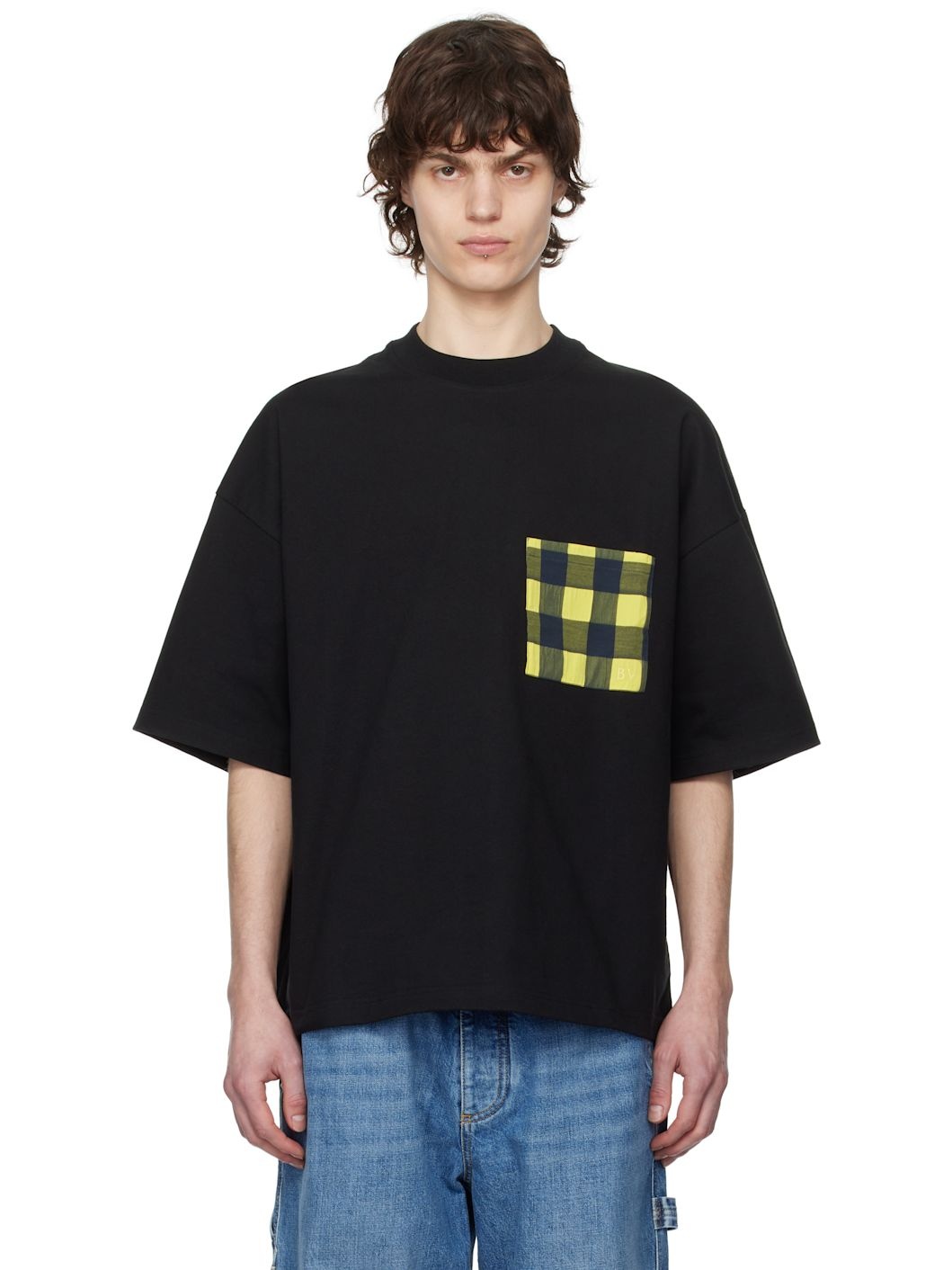 Cotton jersey T-shirt. · Rib-knit crewneck · Logo embroidered at patch pocket · Dropped shoulders Supplier color: Black 100% cotton. Made in Italy 251798M213001