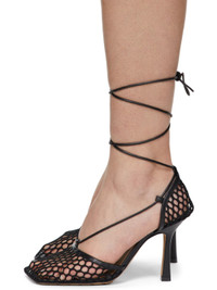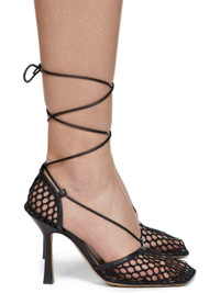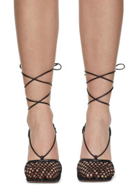 Cotton mesh heels in black. Tonal nappa lambskin trim throughout. · Square toe · Wraparound strap with self-tie fastening at vamp and ankle · Logo stamped at lambskin footbed · Covered stiletto heel · Leather outsole in beige with pebbled rubber injections · Heel: H3.25 in Supplier color: Black Upper: lambskin, textile. Sole: leather, rubber. Made in Italy 221798F122000
