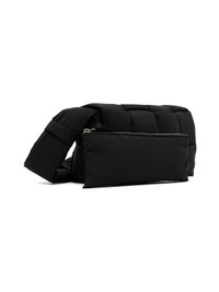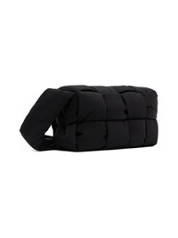 Intreccio-woven padded nylon taffeta messenger bag in black. · Adjustable shoulder strap · Foldover flap · Magnetic closure · Detachable zip pouch at interior · H6 x W12 x D3.25 in Supplier color: Black silver Textile. Made in Italy 231798F048070
