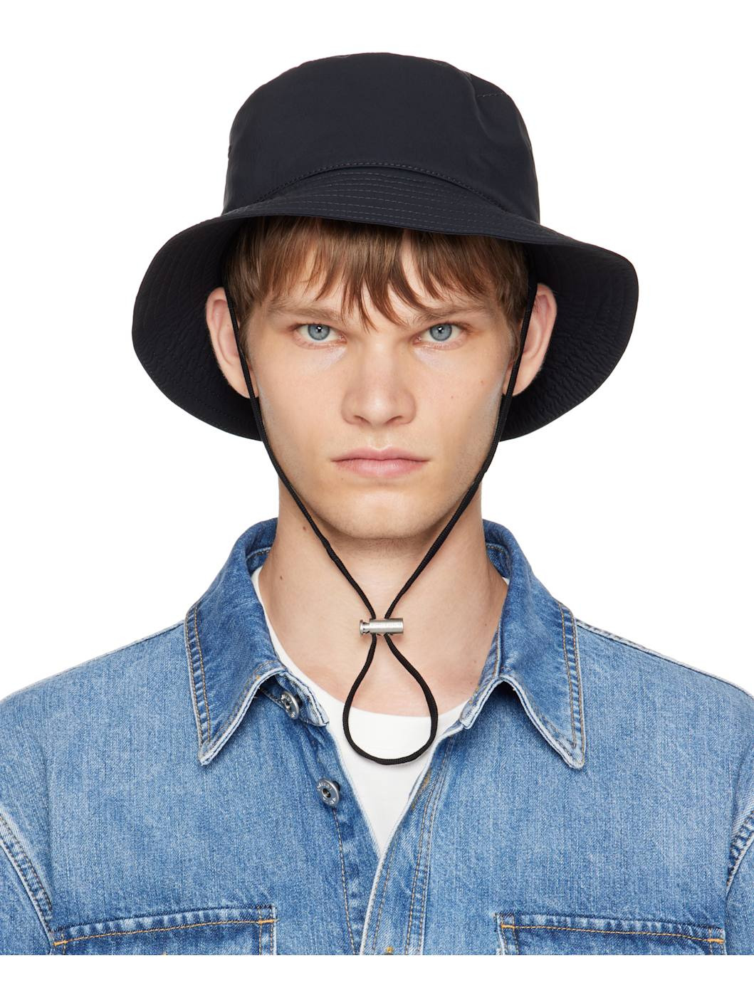 Nylon taffeta bucket hat. · Quilted brim · Embroidered eyelets at sides · Cord-lock chin strap · Cotton twill lining Supplier color: Black Body: 100% polyamide. Lining: 100% cotton. Made in Italy 252798M140001