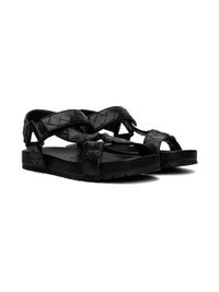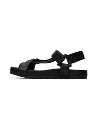 Intrecciato-woven buffed calfskin sandals in black. · Open toe · Velcro ankle strap · Logo embossed at molded leather footbed · Treaded rubber sole Supplier color: Black Upper: calfskin. Sole: rubber. Made in Italy 241798M234001