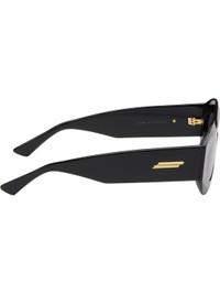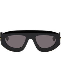 Shield-style acetate-frame sunglasses in black. · Gray lenses · 100% UVA/UVB protection, category 3 · Integrated nose pads · Logo hardware at temples · Includes case · Size: 52.22 140 Supplier color: Black/Grey Acetate. Made in Italy 252798F005012