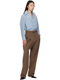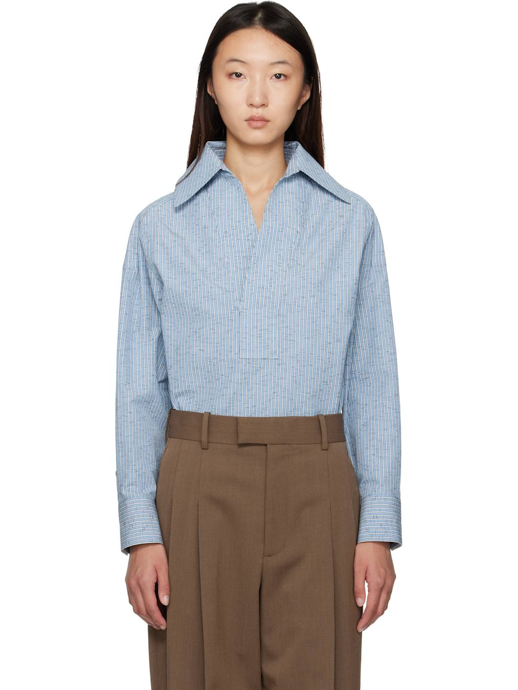 Cotton- and linen-blend dobby cloth shirt. · Stripe pattern throughout · Spread collar · Open placket · Shirttail hem · Dropped shoulders · Buttoned barrel cuffs · Box pleat at back Supplier color: Blue/White Body: 84% cotton, 12% linen, 4% polyamide. Made in Italy 251798F109002