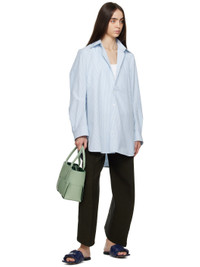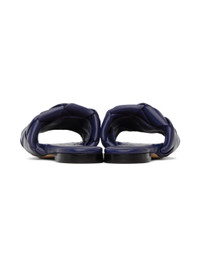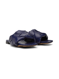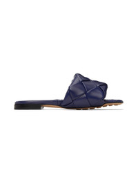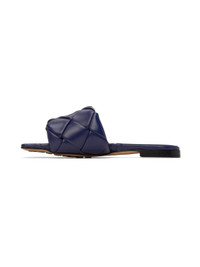 Intrecciatio-woven nappa lambskin flat sandals in blue. · Open square toe · Logo-embossed footbed · Stacked leather midsole · Leather outsole Supplier color: Cruise Lambskin. Made in Italy 231798F124000
