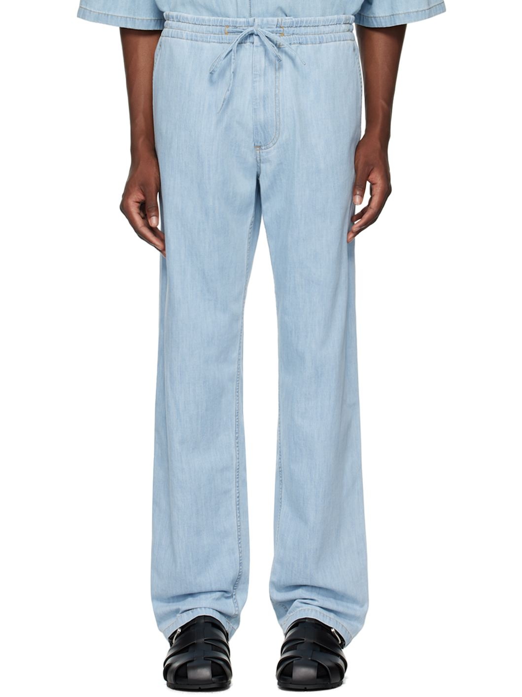 Lightweight non-stretch denim jeans. Fading throughout. · Drawstring at elasticized waistband · Four-pocket styling · Zip-fly · Loop and logo patch at back pocket · Contrast stitching in tan Supplier color: Light bleach 100% cotton. Made in Italy 242798M186000