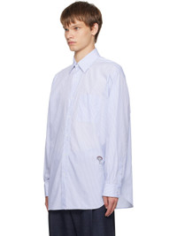 Cotton poplin shirt. · Striped throughout · Spread collar · Button closure · Patch pocket at chest · Embroidered graphic patch at front · Shirttail hem · Buttoned barrel cuffs · Box pleat at back yoke Supplier color: White/Blue 100% cotton. Made in Italy 252798M192004