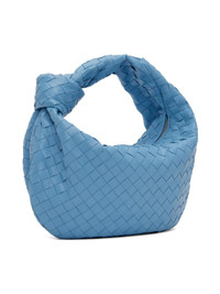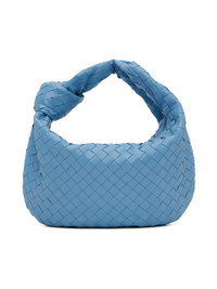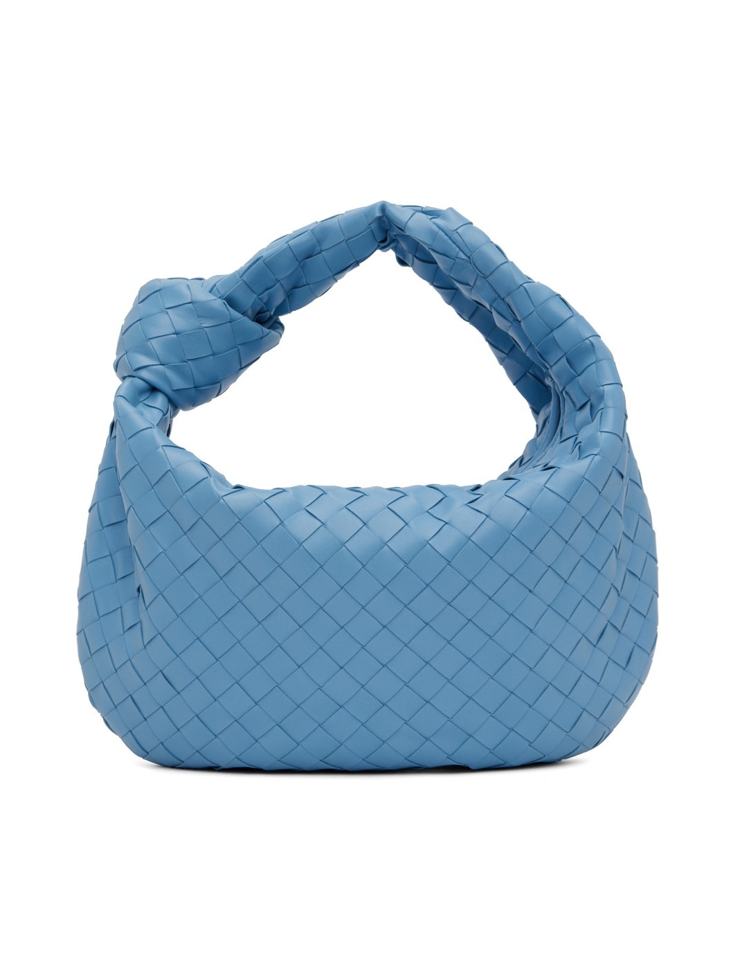 Intrecciato-woven grained lambskin shoulder bag in blue. · Knotted detailing at fixed shoulder strap · Zip closure · Buffed calfskin lining · Gold-tone hardware · H9.25 x W14 x D5 in Supplier color: Windswept/Gold Lambskin, calfskin. Made in Italy 231798F048083