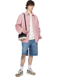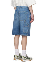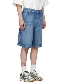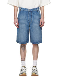 Non-stretch denim cargo shorts. Fading throughout. · Belt loops · Five-pocket styling · Button fly · Hammer loop at outseam · Patch pockets at outseam · Logo patch at back pocket · Logo-engraved silver-tone hardware · Contrast stitching in tan Supplier color: Mid blue 100% cotton. Made in Italy 251798M193003