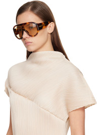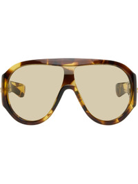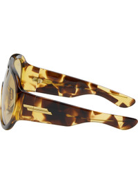 Shield-style tortoiseshell recycled acetate-frame sunglasses. · Yellow lenses · 100% UVA/UVB protection, category 2 · Integrated nose pads · Logo hardware at temples · Exposed core wires · Gold-tone hardware · Includes case · Size: 99.01 120 Supplier color: Havana Recycled acetate. Made in Japan 252798F005027