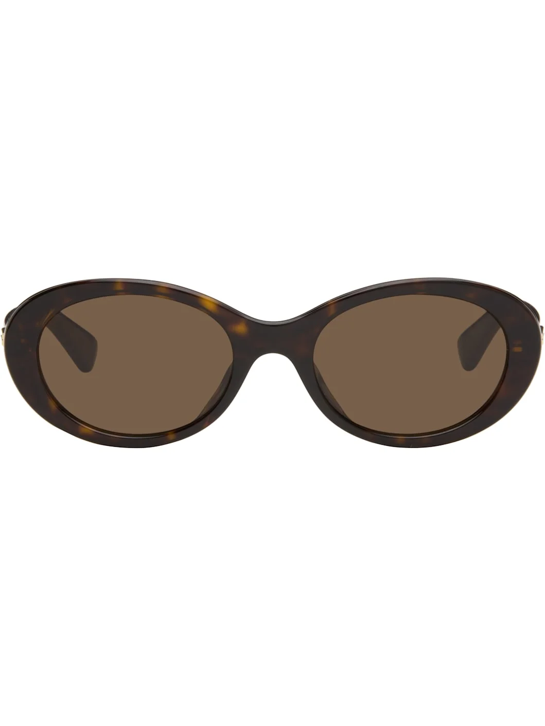 Oval tortoiseshell acetate-frame sunglasses. · Brown lenses · Integrated nose pads · Logo hardware at temples · Includes case · Size: 54.20 145 Supplier color: Havana Acetate. Made in Italy 261798F005009