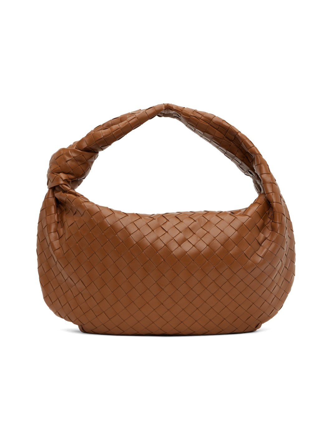 Intrecciato-woven grained lambskin shoulder bag in brown. · Knotted accent at fixed shoulder strap · Zip closure · Zip pocket at interior · Grained calfskin lining · H11.5 x W17 x D2.25 in Supplier color: Wood/Gold Lambskin. Made in Italy 232798F048051