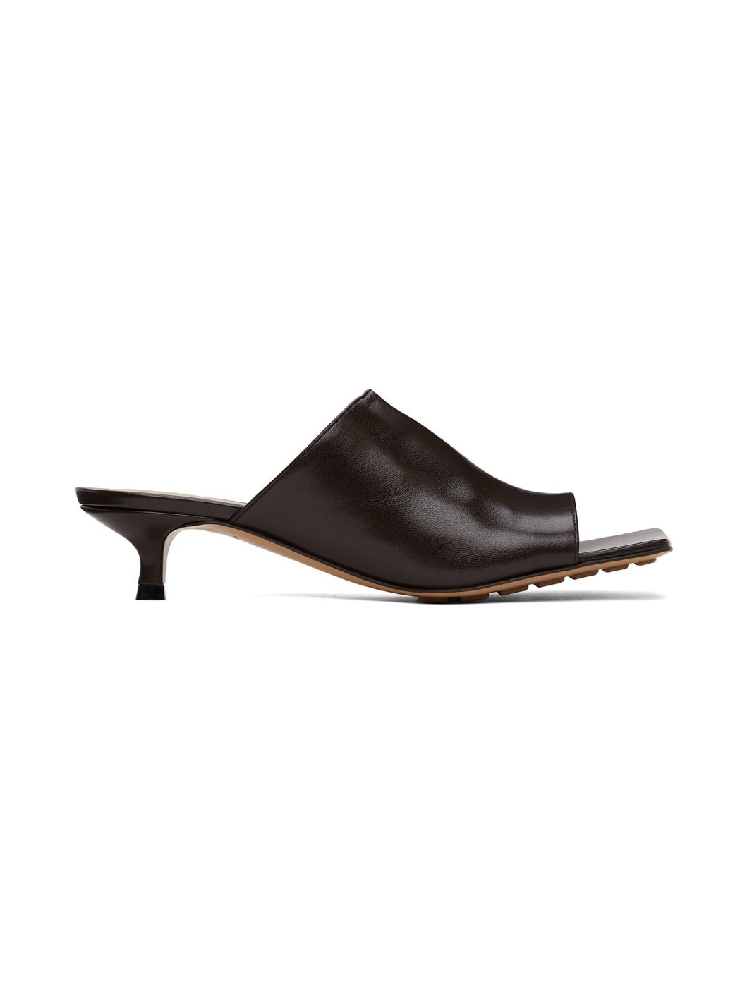 Buffed lambskin heels in brown. · Open square toe · Buffed leather lining in beige · Covered kitten heel with rubber injection · Leather and pebble rubber sole · Heel: H1.5 in Supplier color: Fondant Lambskin. Made in Italy 221798F125011