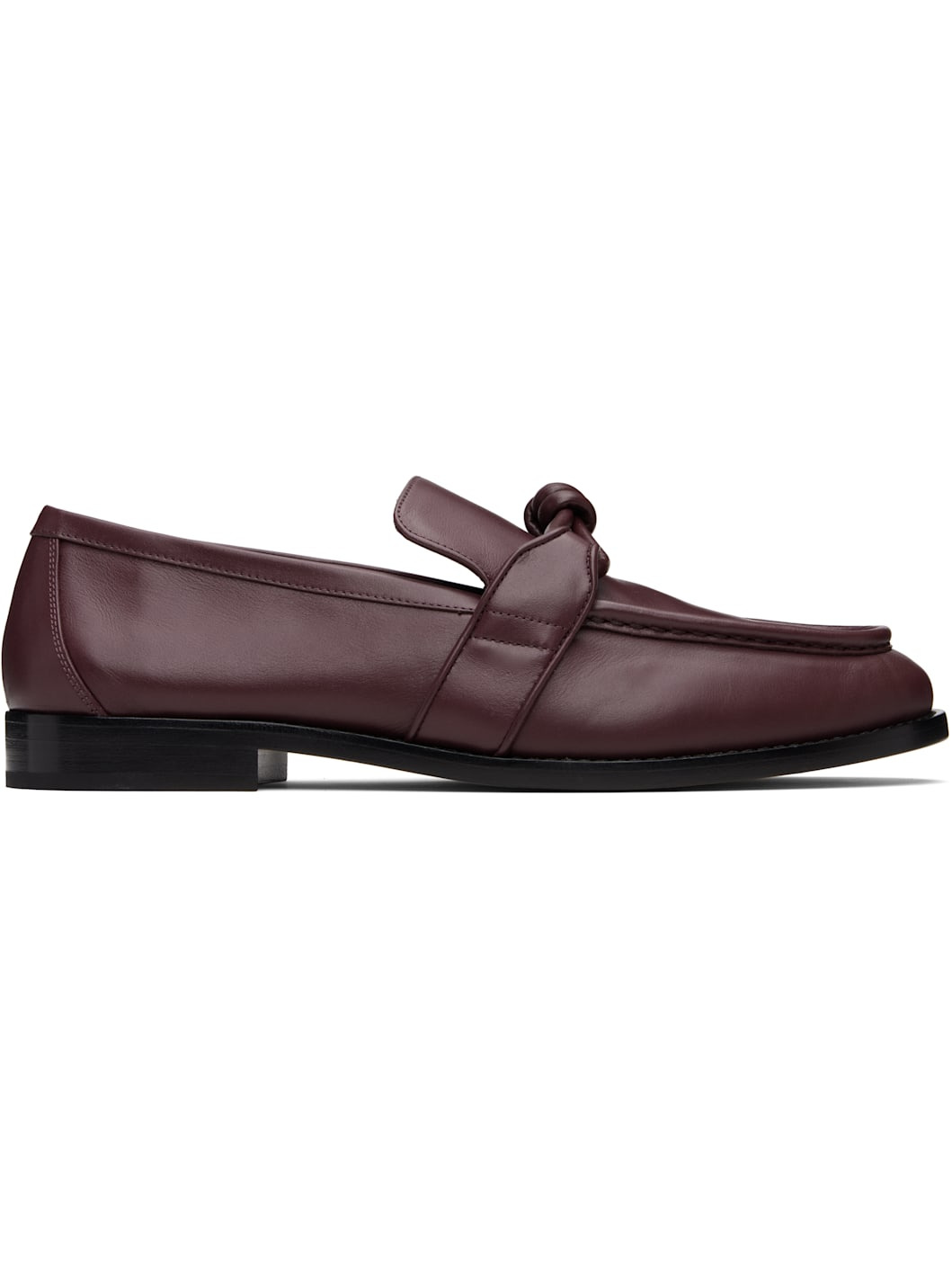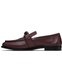 Buffed calfskin loafers. · Moc toe · Knotted strap at vamp · Stacked leather heel with rubber injection · Leather sole Supplier color: Baralo Upper: calfskin. Sole: leather, rubber. Made in Italy 252798M231003