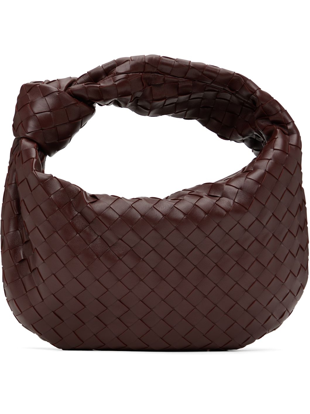 Intrecciato-woven grained lambskin shoulder bag in burgundy. · Knotted accent at integrated shoulder strap · Zip closure · Buffed calfskin lining · Gold-tone hardware · H9" x W15" x D5" · Total height: H14.25" Supplier color: Madder brown Lambskin. Made in Italy 251798F048040
