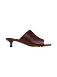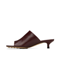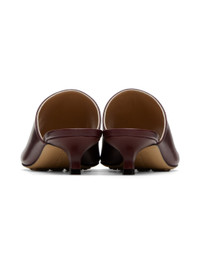 Buffed lambskin slip-on heeled sandals in burgundy. · Open square toe · Logo-embossed buffed leather footbed · Covered kitten heel · Leather outsole with rubber injections · Heel: H1.5 in Supplier color: Merlot Upper: leather. Sole: leather, rubber. Made in Italy 231798F125009