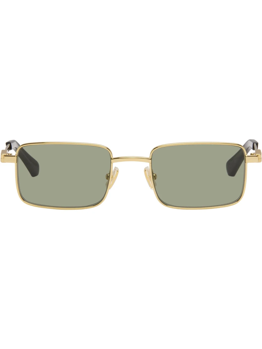 Rectangular metal-frame sunglasses. · Green lenses · 100% UVA/UVB protection, category 2 · Adjustable rubber nose pads · Acetate temple tips · Includes case · Size: 53.21 145 Supplier color: Gold/Green Metal, acetate. Made in Italy 261798M134024