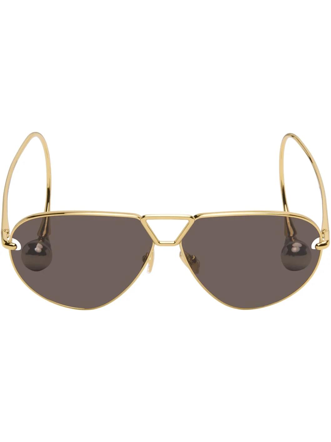 Aviator-style metal-frame sunglasses. · Gray lenses · 100% UVA/UVB protection, category 3 · Adjustable rubber nose pads · Cutout at lenses · Graphic hardware temple tips · Includes case · Size: 64.12 185 Supplier color: Gold/Grey Metal. Made in Italy 262798F005008