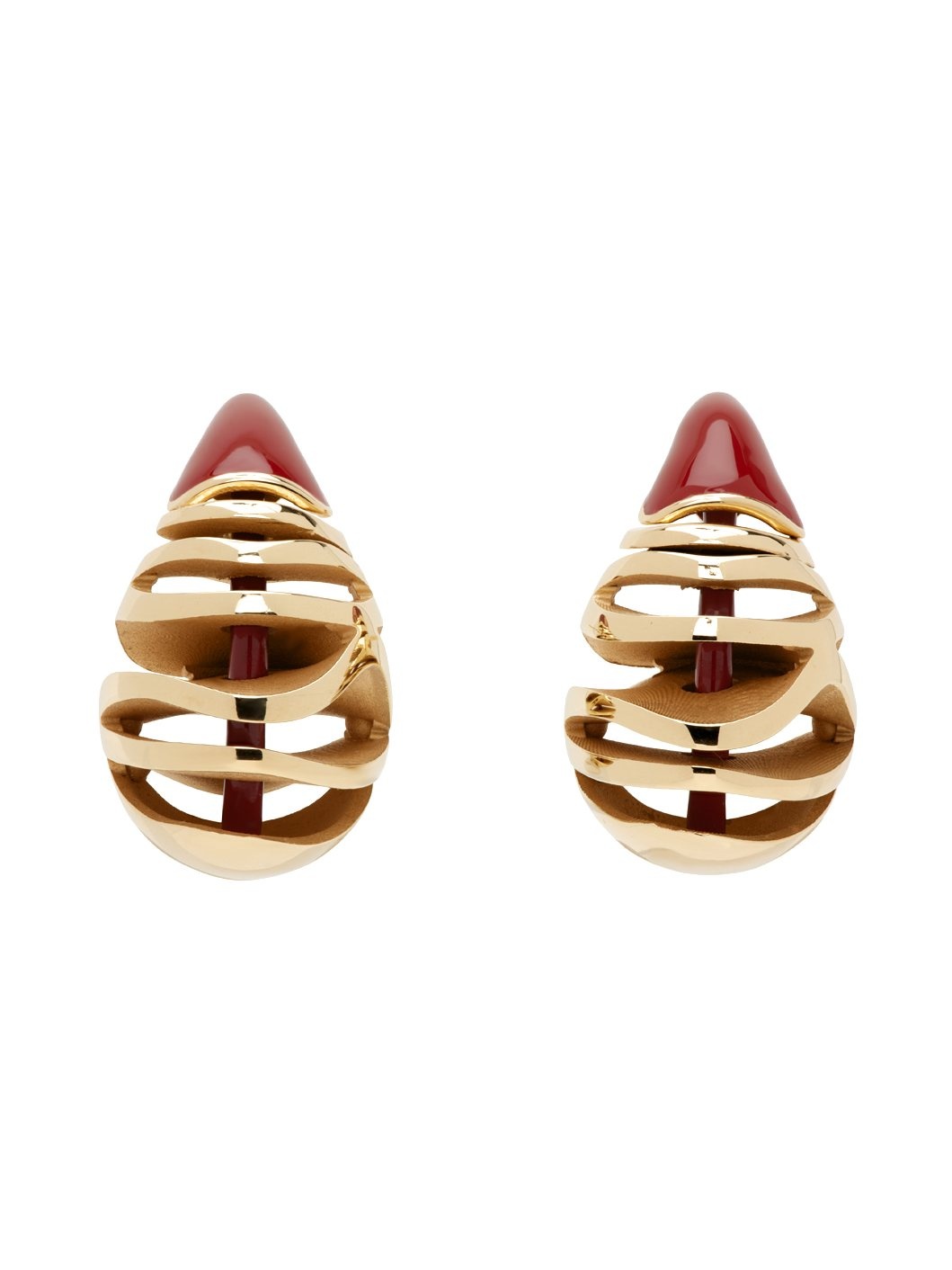 Pair of drop earrings in 18k gold-plated sterling silver. · Cutouts throughout · Hand-enameled graphic at face · Post-stud fastening · H1" x W0.75" Supplier color: Syrup 18k gold, 925 sterling silver, enamel. Made in Italy 242798F022016