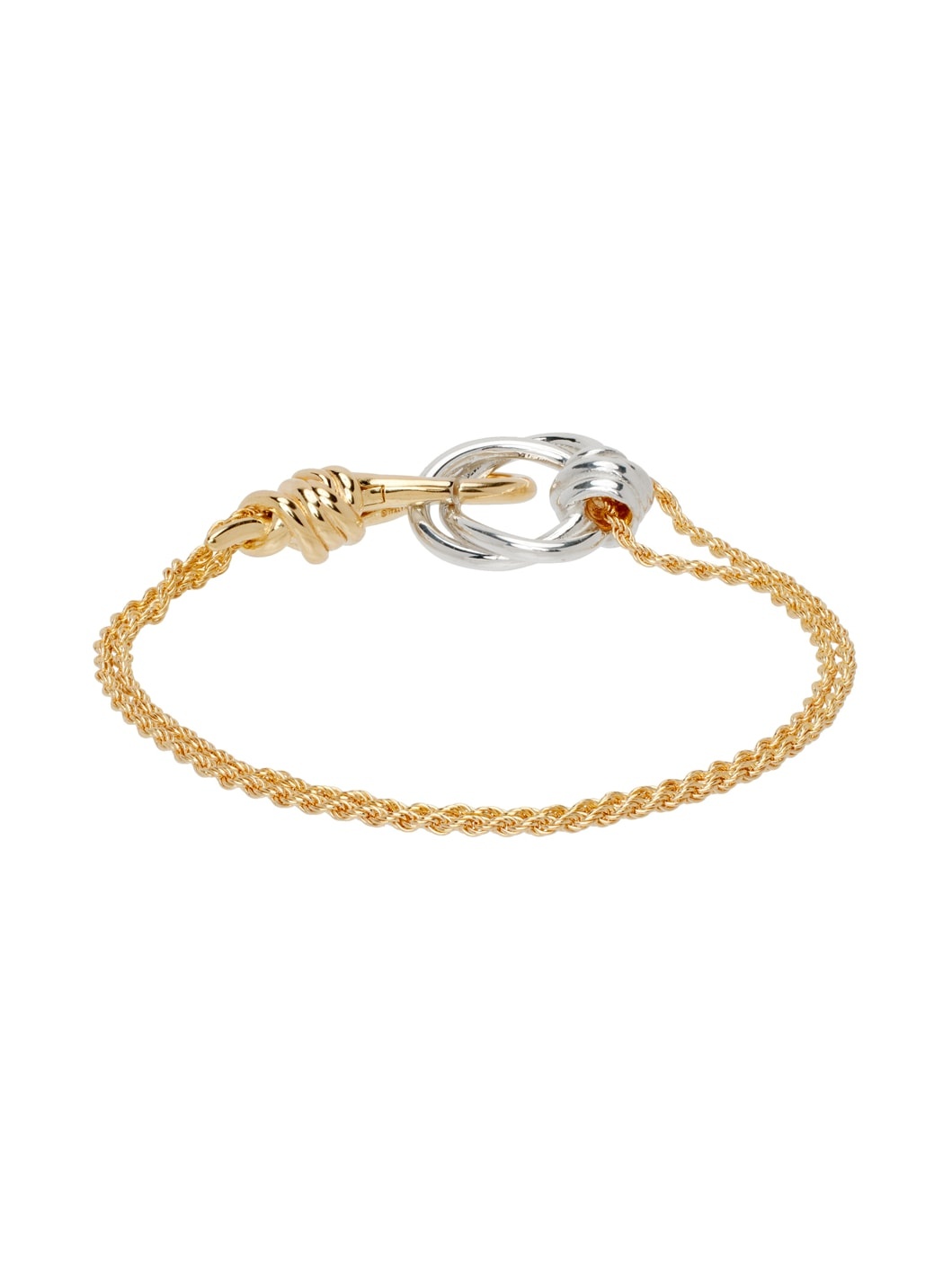 Tiered rope chain bracelet in 18k gold-plated sterling silver. · Knotted hardware at face · Lanyard-clasp fastening Supplier color: Silver/Yellow gold 18k gold, 925 sterling silver. Made in Italy 242798F020000