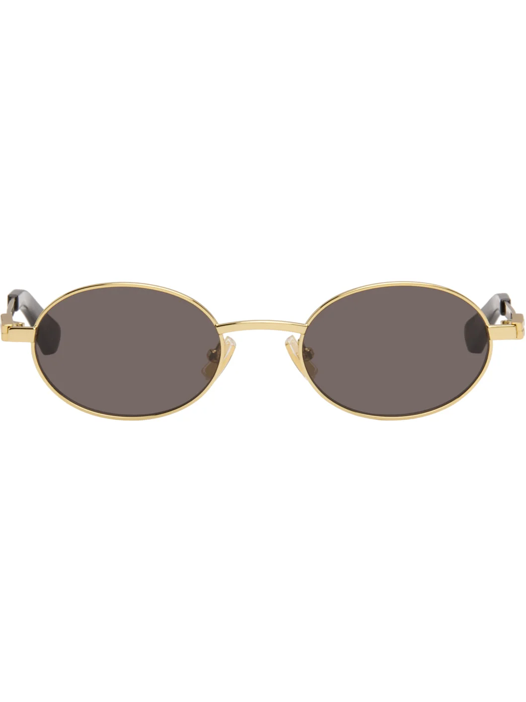 Oval metal-frame sunglasses. · Gray lenses · Adjustable rubber nose pads · Logo hardware at temples · Acetate temple tips · Includes case · Size: 52.21 140 Supplier color: Gold/Gold/Grey Metal. Made in Italy 261798M134023