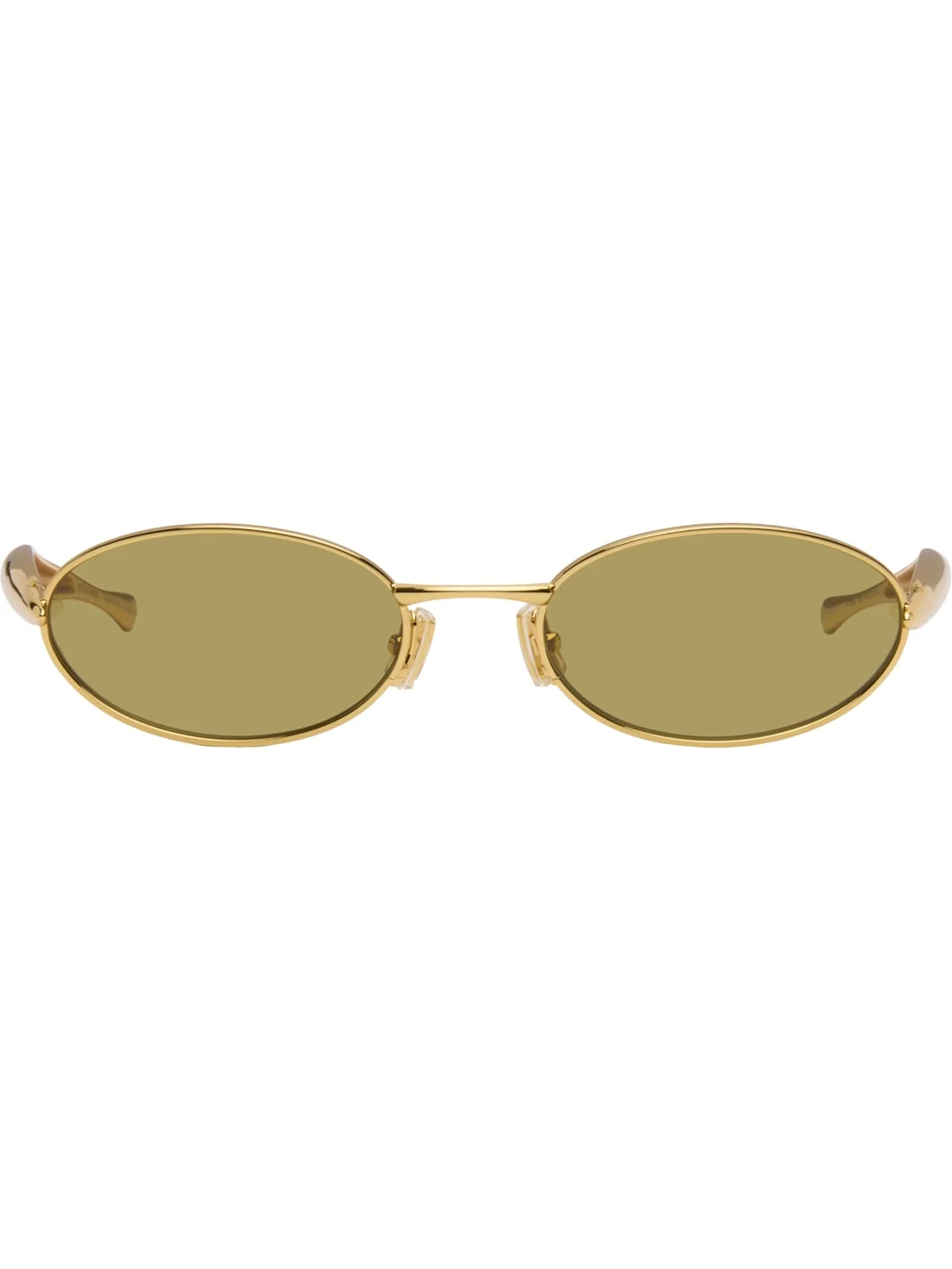 Oval metal-frame sunglasses. · Green lenses · Adjustable rubber nose pads · Sculptural arms · Includes case · Size: 57.21 135 Supplier color: Gold/Green Metal. Made in Japan 261798M134009