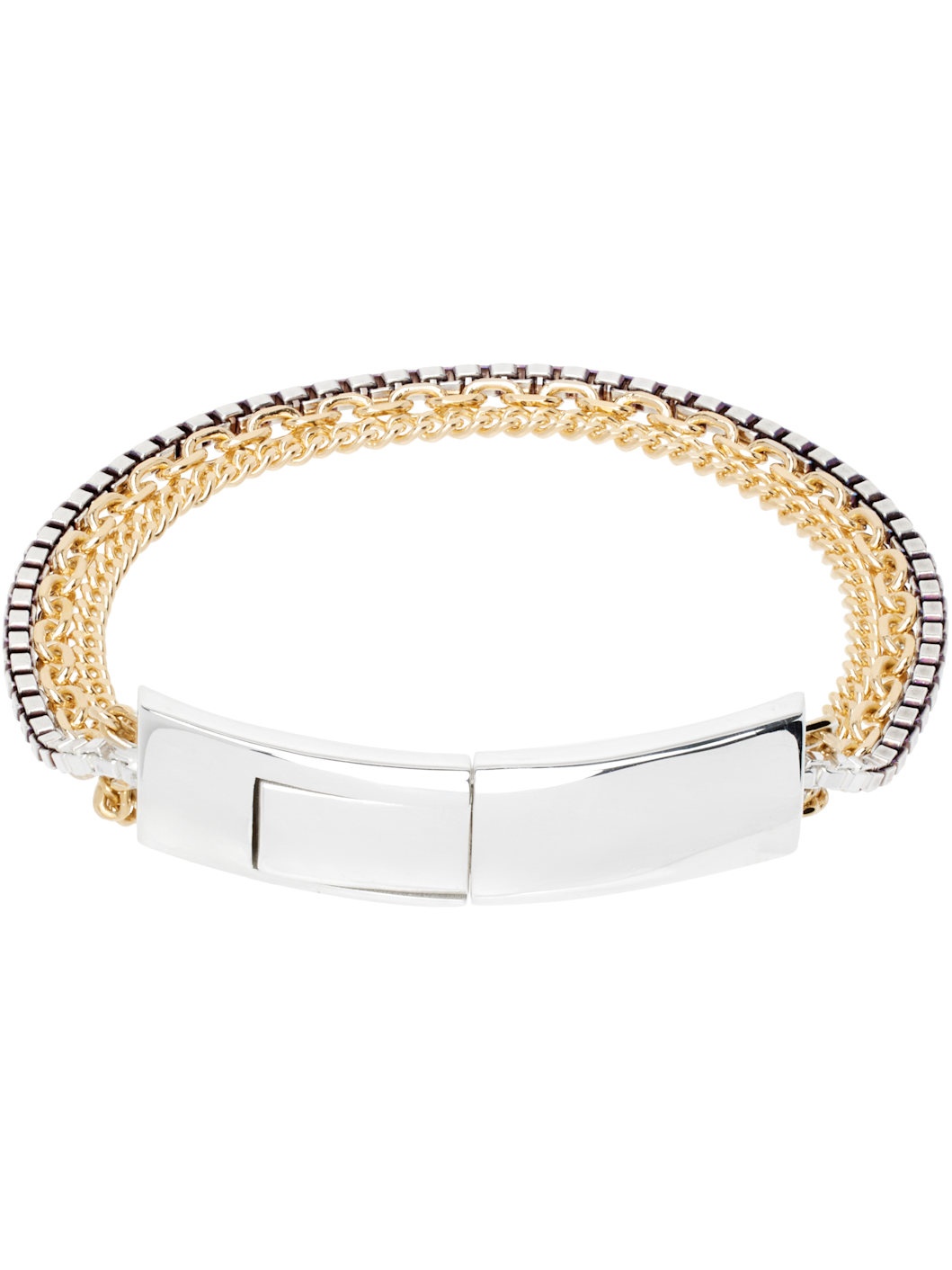 Tiered box, cable, and curb chain bracelet in sterling silver and 18k gold-plated sterling silver. Logo-engraved press-release fastening. Supplier color: Silver/Yellow gold 18k gold, 925 sterling silver. Made in Italy 251798M142001