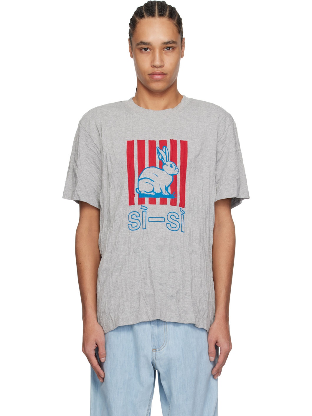 Crinkled polyester- and cotton-blend jersey T-shirt. · Rib-knit crewneck · Graphic and text printed at front Supplier color: Light grey melange Body: 73% polyester, 27% cotton. Trim: 52% cotton, 48% polyester. Made in Italy 251798M213007