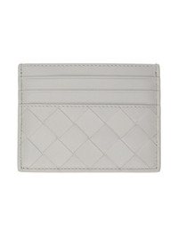 Intrecciato-woven nappa lambskin card holder in gray. · Burnished edges throughout · Six card slots · One central note slot · Calfskin lining · H3.25" x W4" Supplier color: Agate grey Lambskin. Made in Italy 232798F037021