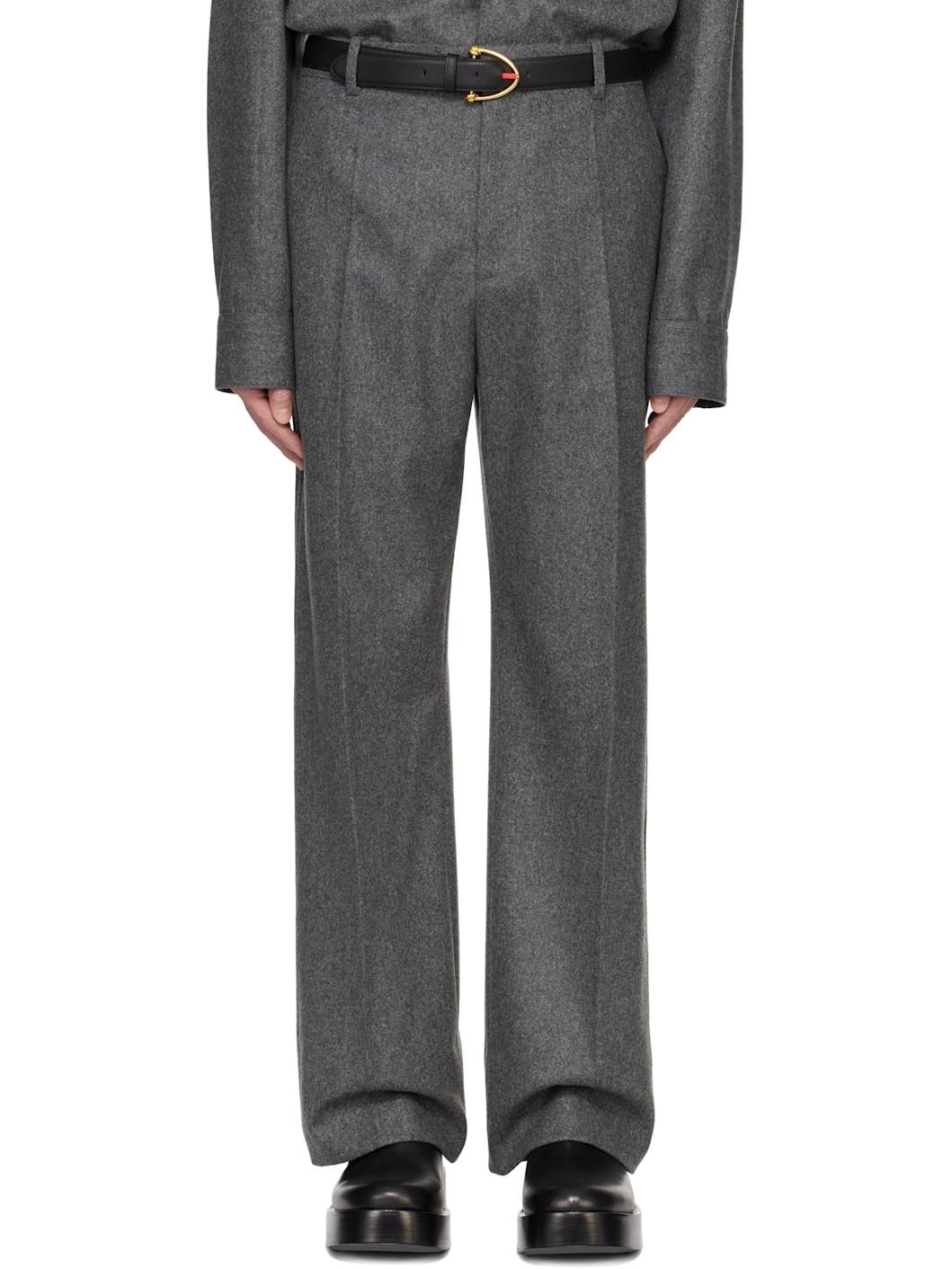 Straight-leg lightweight wool flannel trousers. · Belt loops · Three-pocket styling · Zip-fly · Creased legs Supplier color: Grey melange