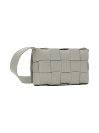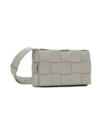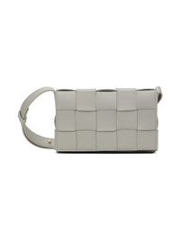 Intreccio-woven buffed lambskin shoulder bag in gray. · Adjustable shoulder strap · Magnetic flap · Patch pocket at interior · Unlined · H4" x W7" x D1.5" Supplier color: Agate grey/Gold 100% lambskin. Made in Italy 232798F048062