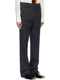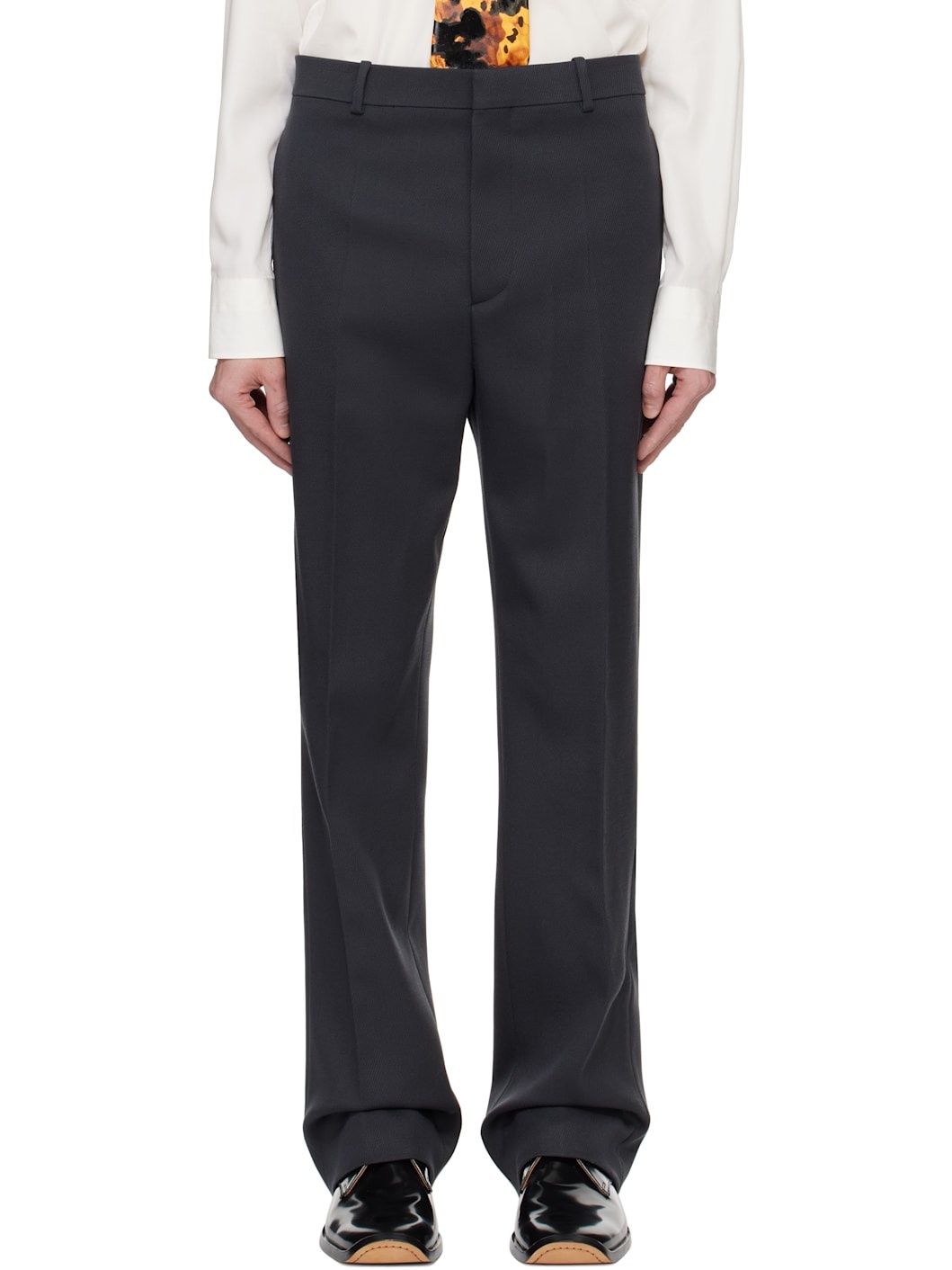 Stretch wool tricotine trousers. · Belt loops · Three-pocket styling · Zip-fly · Creased legs Supplier color: Shadow Body: 99% wool, 1% elastane. Lining: 100% cotton. Made in Italy 242798M191013