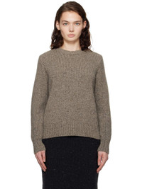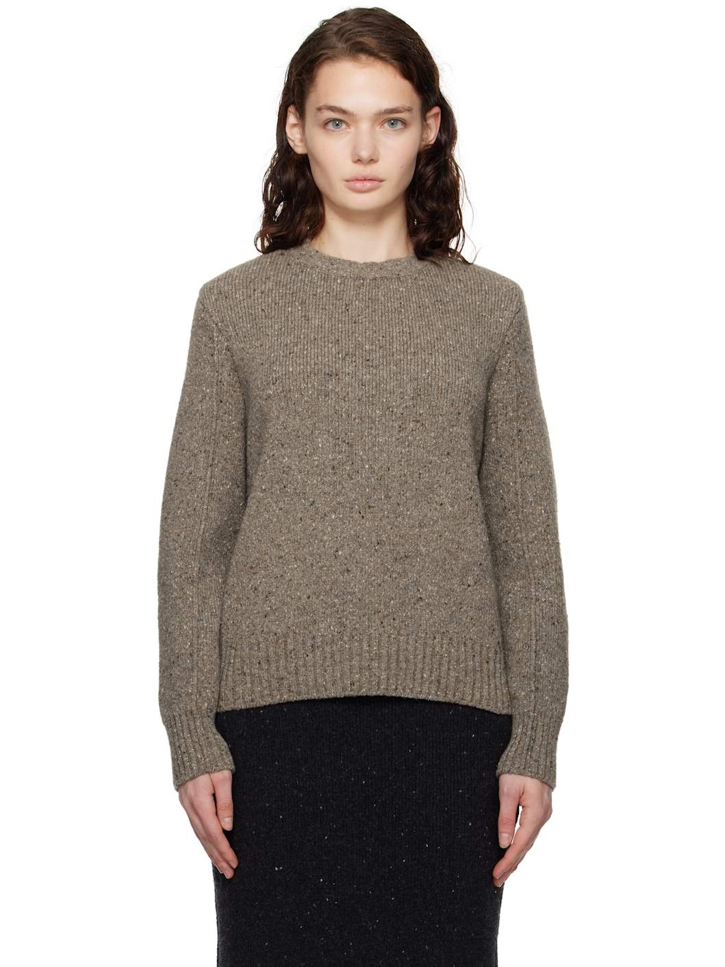 Pilled knit stretch wool- and nylon-blend sweater. · Rib-knit crewneck, hem, and cuffs · Padded shoulders · Pinched seam at sleeves Supplier color: Riverbed melange 57% wool, 23% polyamide, 19% viscose, 1% elastane. Made in Italy 242798F096001