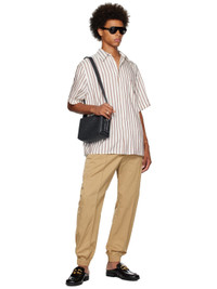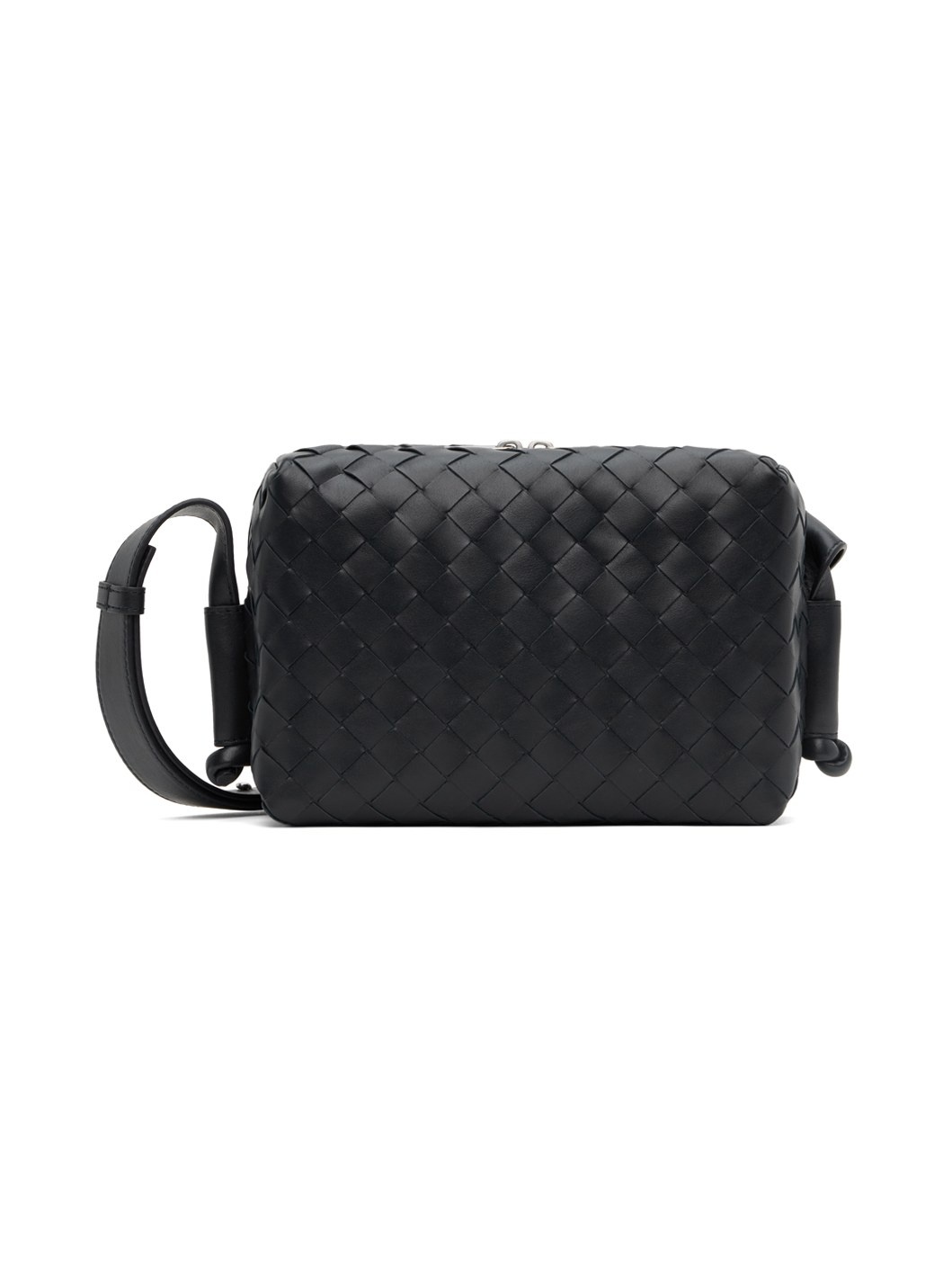 Intrecciato-woven grained leather messenger bag in gray. · Adjustable shoulder strap · Zip closure · Zip pocket at interior · Canvas lining · H6.5 x W9 x D4 in Supplier color: Space/Silver Leather. Made in Italy 232798M170018