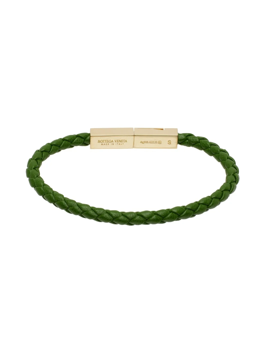 Braided leather bracelet in green. · Logo-engraved box-clasp fastening · 18k gold-plated sterling silver hardware · Full hallmarking Supplier color: Green 18k gold, 925 sterling silver, leather.