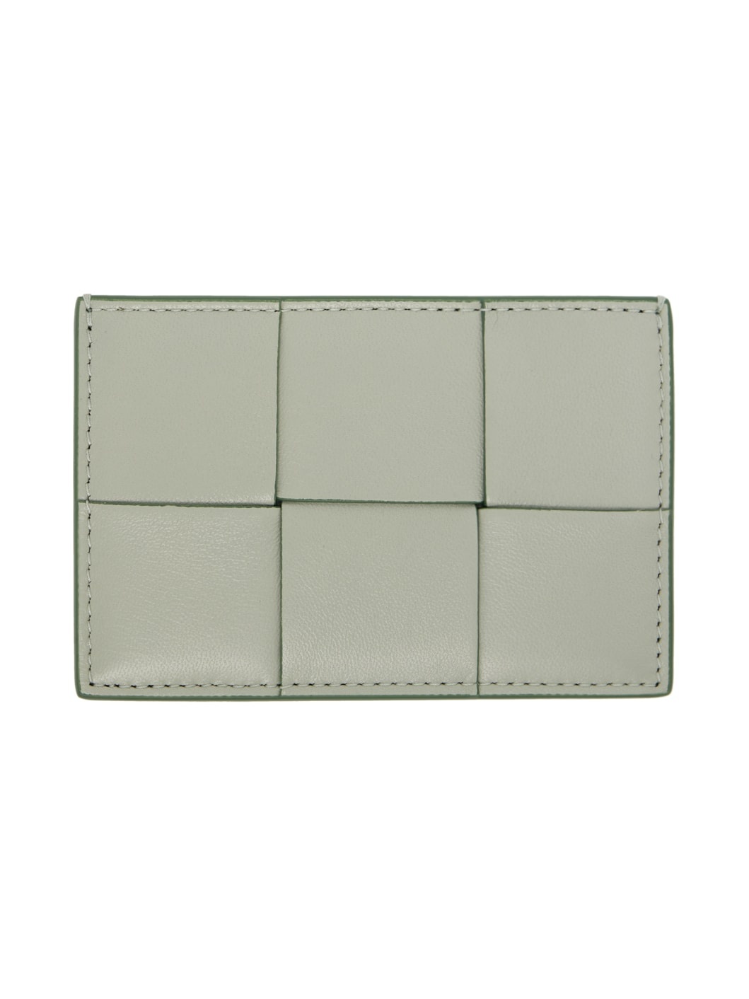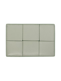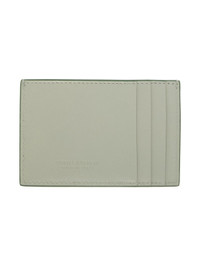 Intreccio-woven nappa lambskin card holder in green. · Burnished edges throughout · Central note slot · Logo embossed at back face · Three card slots · Buffed calfskin lining · H3" x W4.5" Supplier color: Lotus gold Lambskin, calfskin. Made in Italy 241798F037004