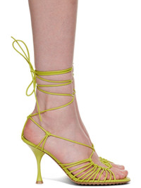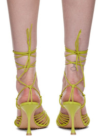 Grained leather heeled sandals in green. · Open toe · Thong-style leather strap at vamp · Self-tie wraparound ankle straps · Stacked stiletto heel · Leather sole with rubber injections Supplier color: Kiwi Leather. Made in Italy 221798F125008