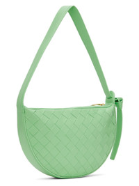 Intrecciato-woven grained nappa lambskin shoulder bag in green. · Knotted accent at fixed shoulder strap · Zip closure · Card slot at interior · Buffed calfskin lining · H6" x W9" x D1.5" · Total height: H13.5" Supplier color: Siren/Gold Lambskin. Made in Italy 232798F048057