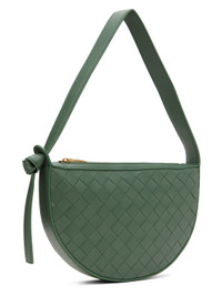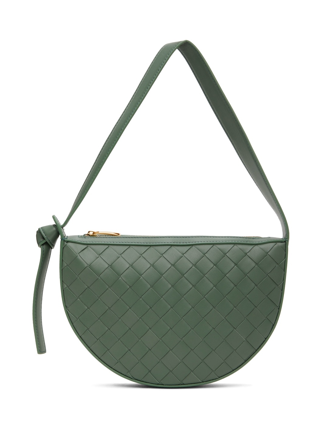 Intrecciato-woven buffed lambskin shoulder bag in green. · Knotted accent at fixed shoulder strap · Zip closure · Card slot at interior · Buffed calfskin lining · Gold-tone hardware · H6" x W9" x D1.5" · Total height: H13.5" Supplier color: Aloe/Gold Lambskin. Made in Italy 241798F048036