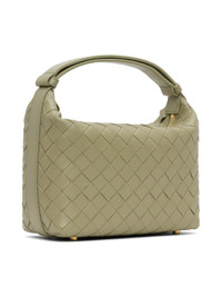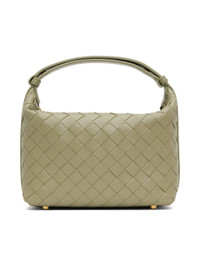 Intrecciato-woven grained calfskin shoulder bag in green. · Adjustable shoulder strap · Bumper studs at base · Zip closure · Buffed lambskin lining · Gold-tone hardware · H5" x W8" x D4" Supplier color: Travertine/Gold Calfskin. Made in Italy 242798F048018