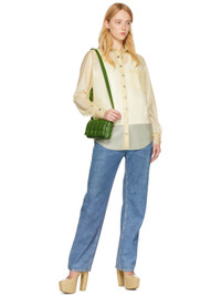 Padded intreccio-woven grained lambskin shoulder bag in green. · Logo hardware at adjustable pin-buckle shoulder strap · Foldover flap with concealed tab-slot closure · Zip pocket at interior · Bonded lambskin lining · Gold-tone hardware · H4.75 x W7.5 x D2 in Supplier color: Avocado/Gold Lambskin. Made in Italy 231798F048005