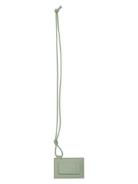 Intreccio-woven grained lambskin card holder in green. Burnished edges throughout. · Knotted shoulder strap · One card slot · Calfskin lining · H2.75 x W4 in Supplier color: New sauge/Gold Lambskin. Made in Italy 231798F040012