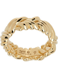 Hand-polished band ring in 18k gold-plated sterling silver. · Engraved intreccio pattern throughout · Logo and hallmarking at inner band Supplier color: Yellow gold 18k gold-plated 925 sterling silver. Made in Italy 252798F024001