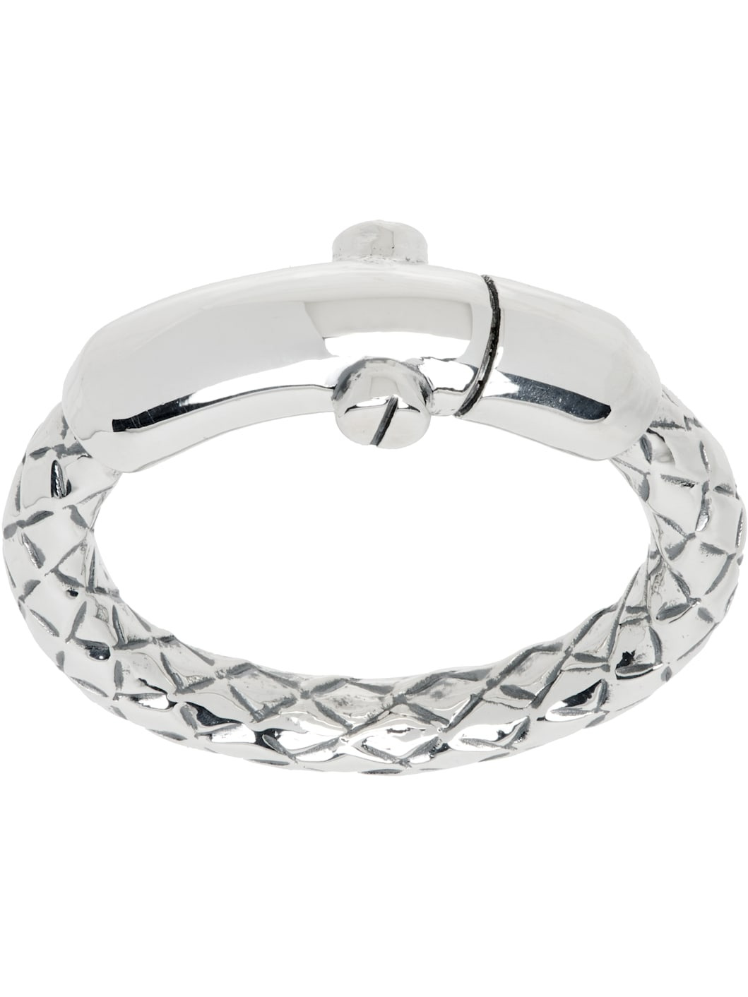 Tubular-band ring in sterling silver. · Engraved intreccio pattern throughout · Rivet at sides Supplier color: Silver 925 sterling silver. Made in Italy 252798M147001