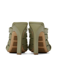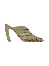 Intreccio-woven grained lambskin slip-on heeled sandals in khaki. · Pointed toe · Logo embossed at padded footbed · Covered stiletto heel · Leather sole with rubber injections · Heel: H4 in Supplier color: Travertine Upper: lambskin. Sole: leather, rubber. Made in Italy 231798F125043