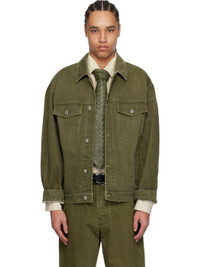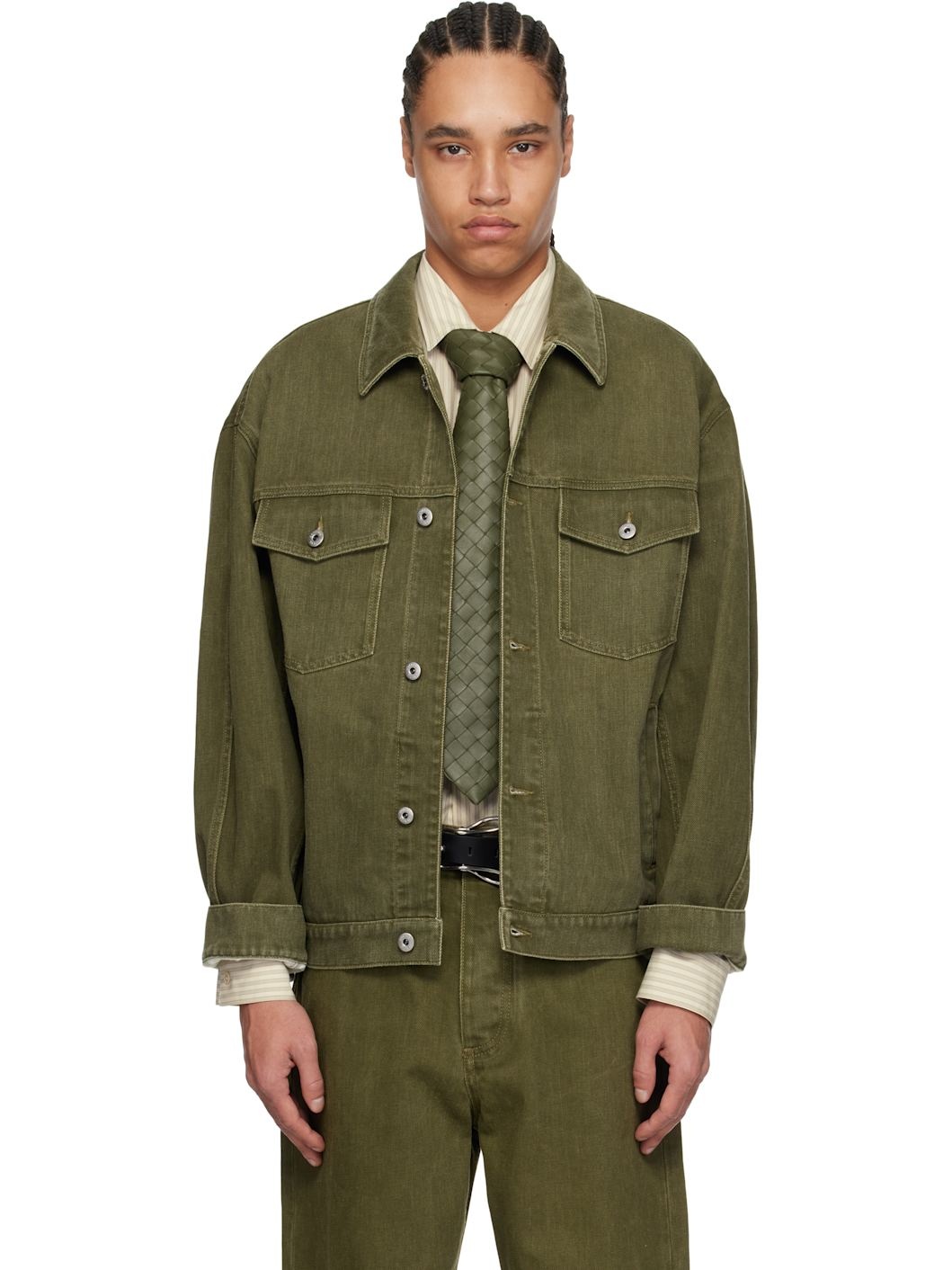 Stonewashed non-stretch denim jacket. Fading throughout. · Spread collar · Button closure · Flap and welt pockets · Buttoned cuffs · Intrecciato-woven suede logo patch at back hem Supplier color: Caper stone washed Body: 100% cotton. Lining: 65% polyester, 35% cotton. Made in Italy 251798M177002